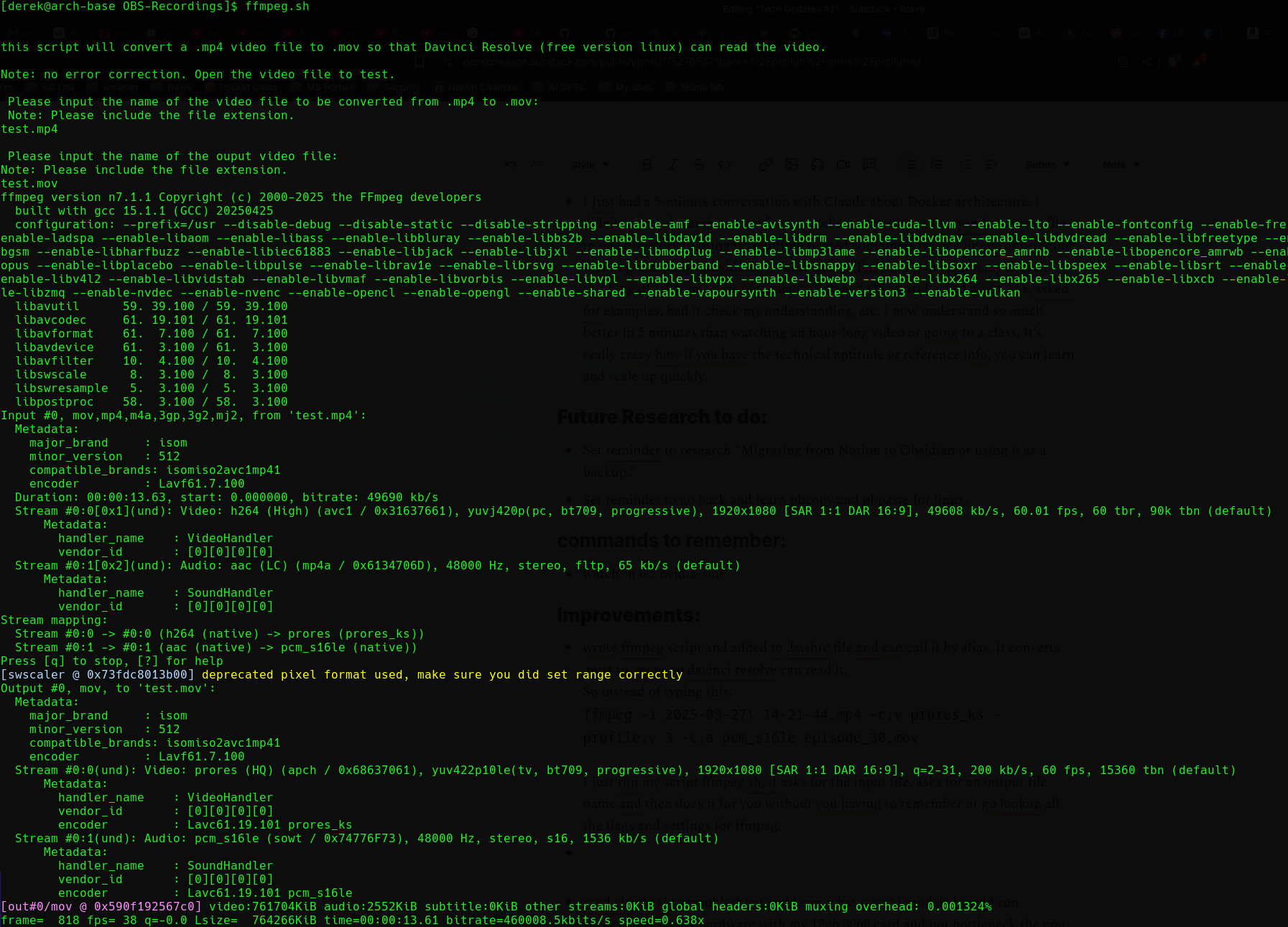 So instead of typing this:ffmpeg -i 2025-09-27\ 14-21-44.mp4 -c:v prores_ks -profile:v 3 -c:a pcm_s16le episode_30.mov